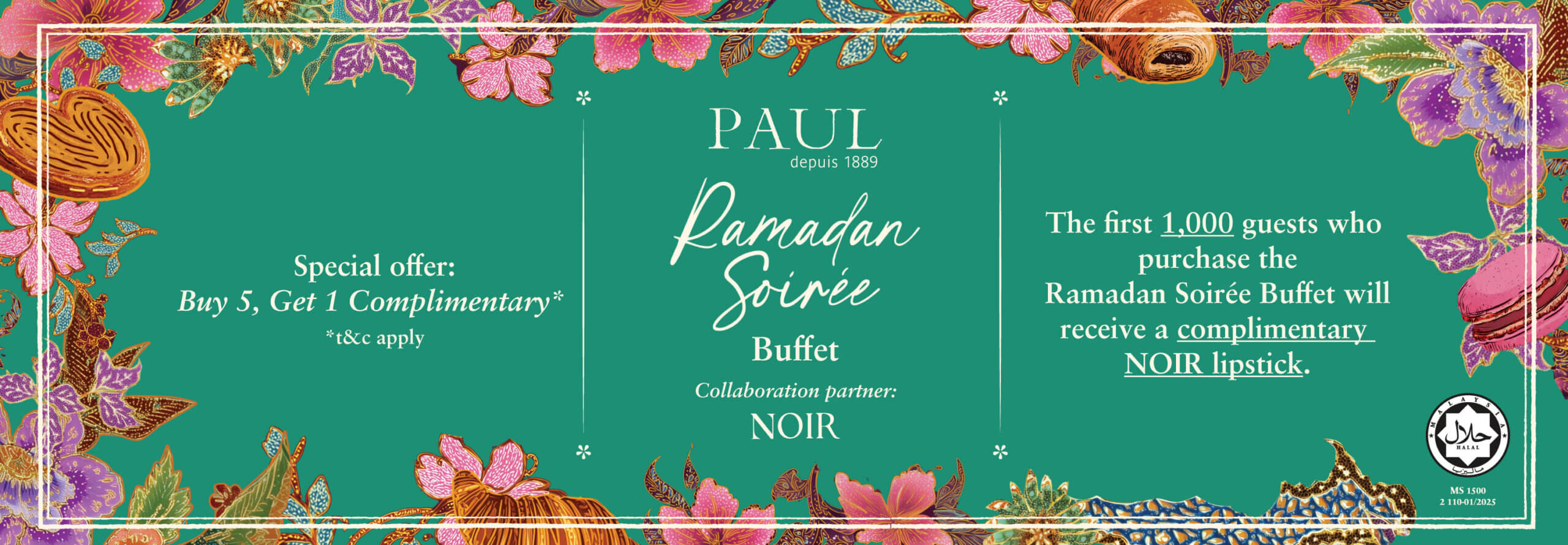 Enhancing the experience is a lifestyle collaboration with NOIR, where beauty and dining meet with effortless elegance — Ramadan Soirée with Style. As part of this collaboration, the first 1,000 guests who purchase the Ramadan Soirée Buffet will receive a complimentary NOIR lipstick, celebrating confidence, self-expression, and style throughout the Ramadan season. Subsequent guests will enjoy exclusive vouchers from PAUL and NOIR, available throughout the Ramadan buffet period.